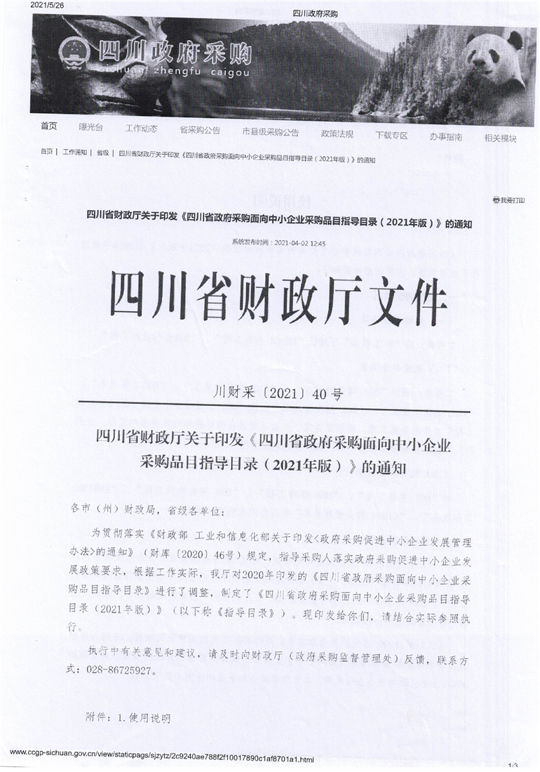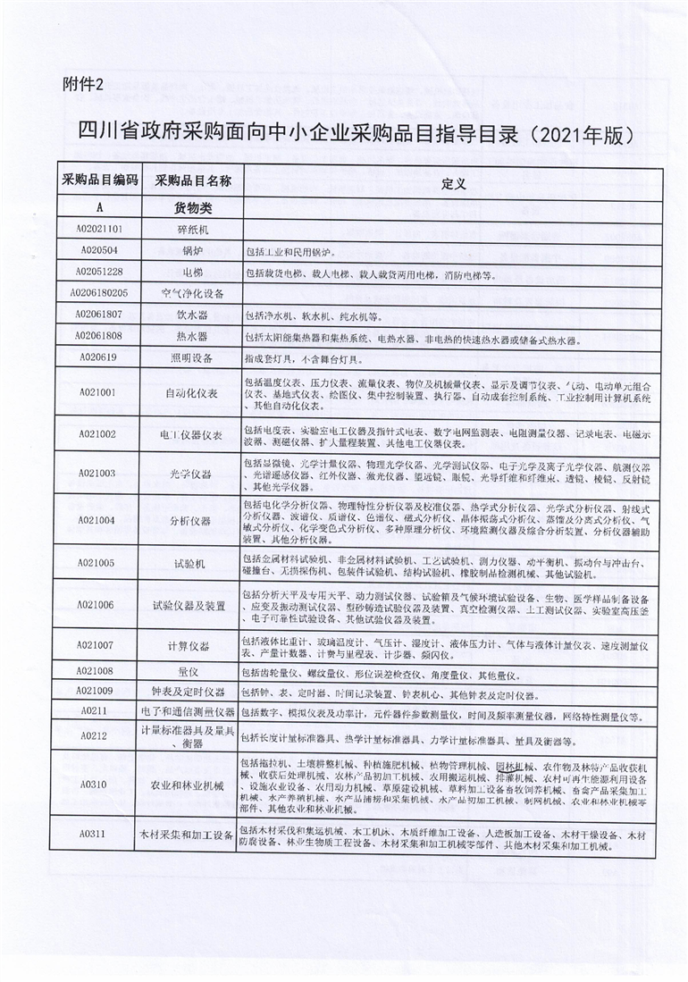 川财采【2021】40号(四川省政府采购面向中小企业采购品目指导目录2021版) (2)